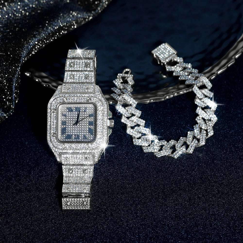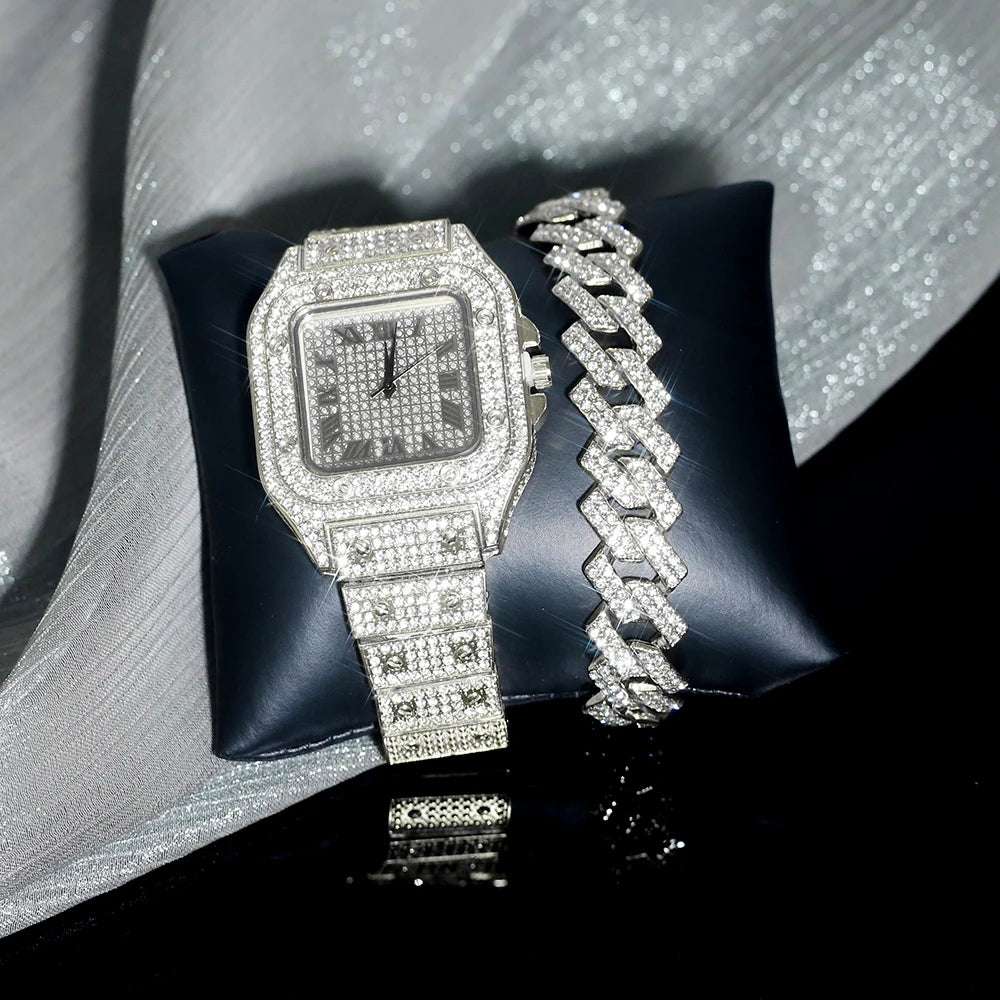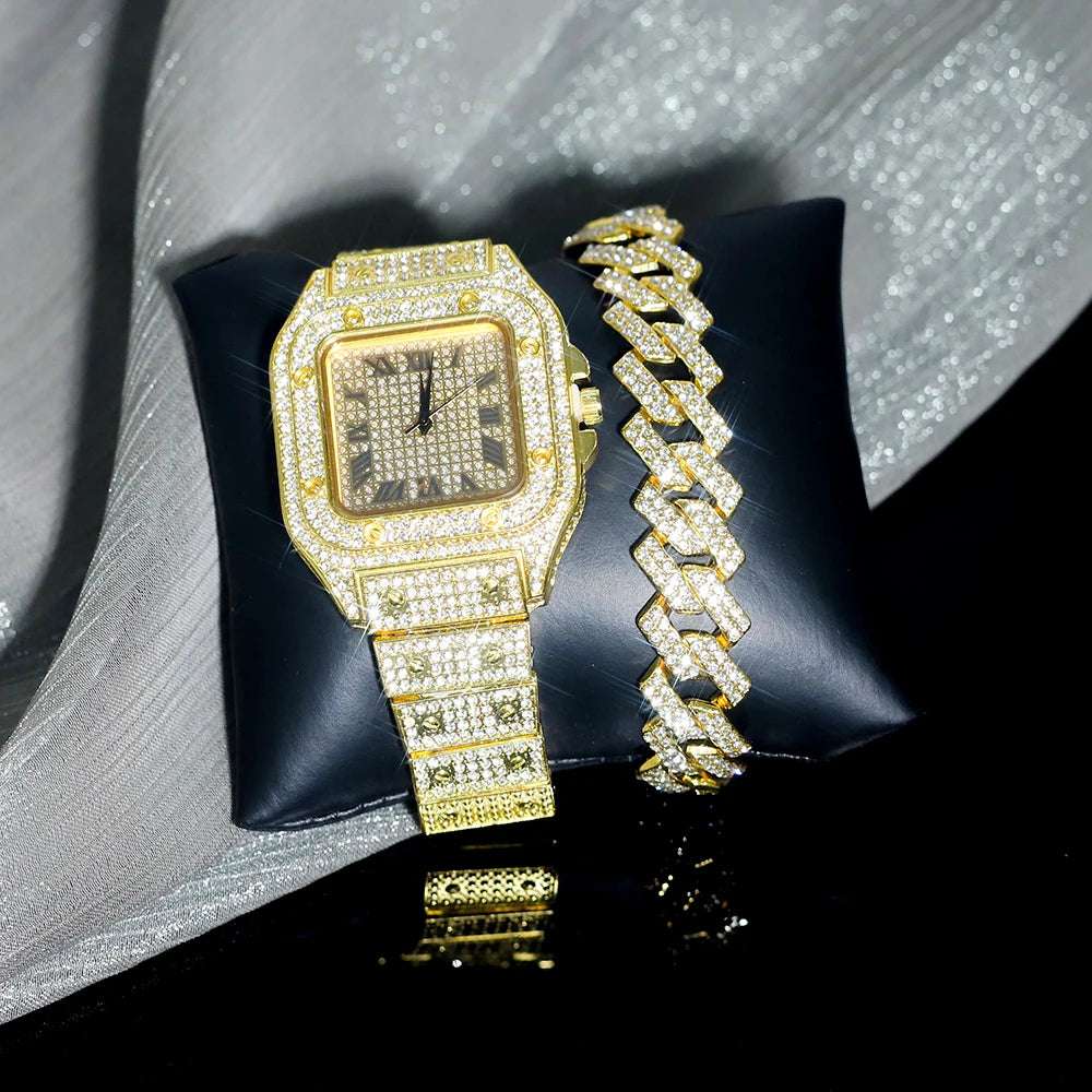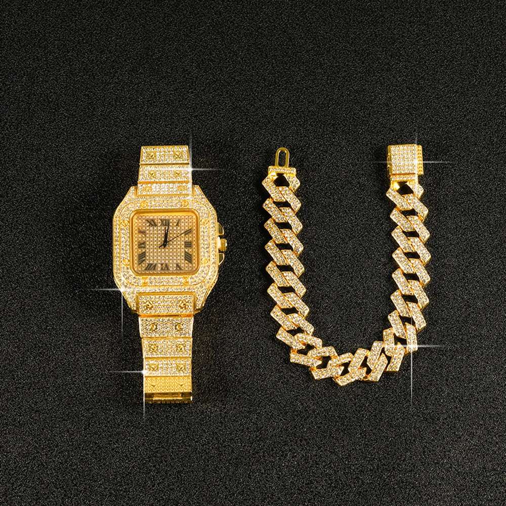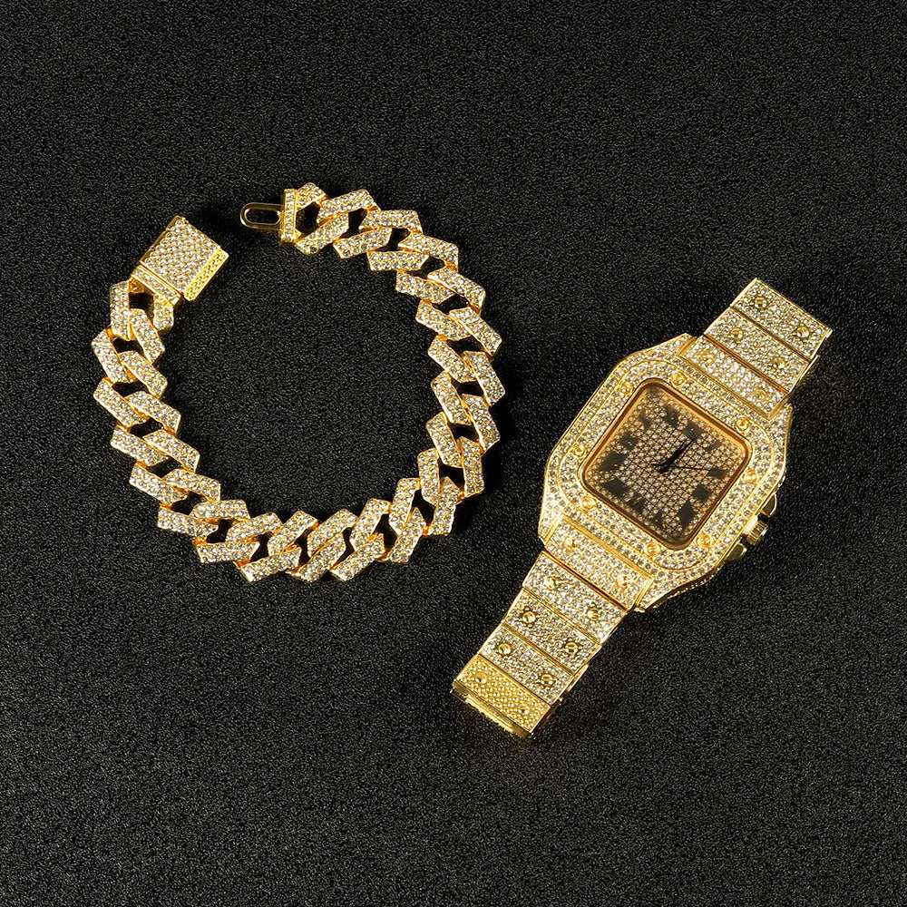 ICED OUT BRACELET WATCH SET MIAMI CUBAN BRACELET HIP POP STYLE