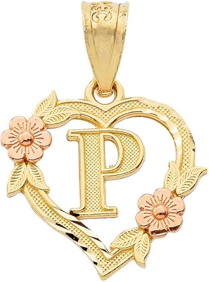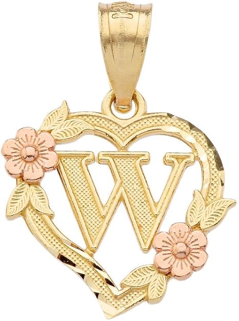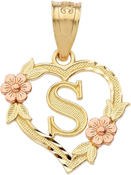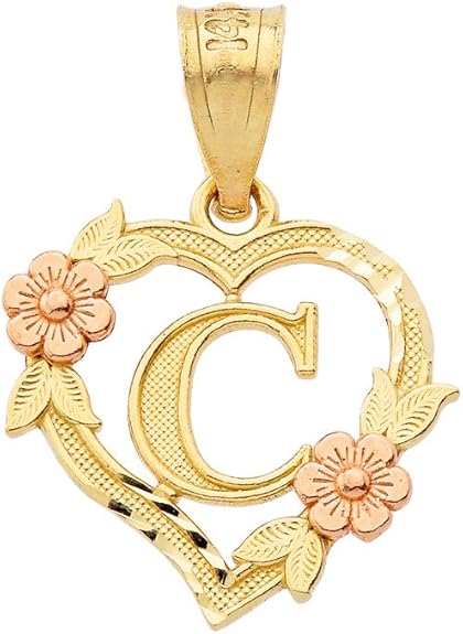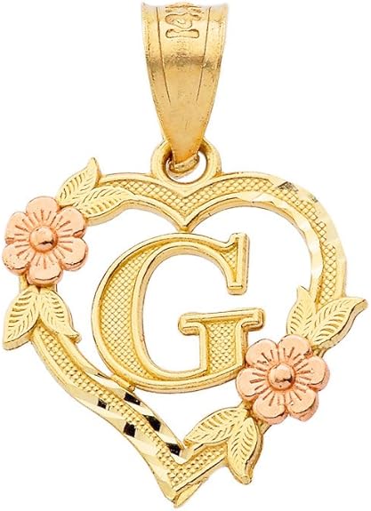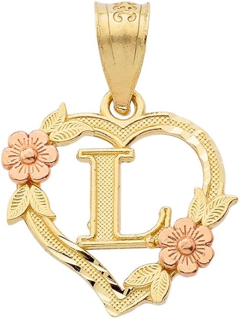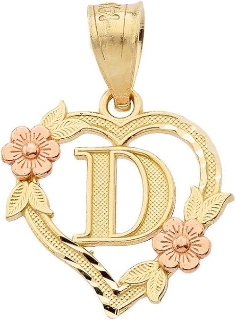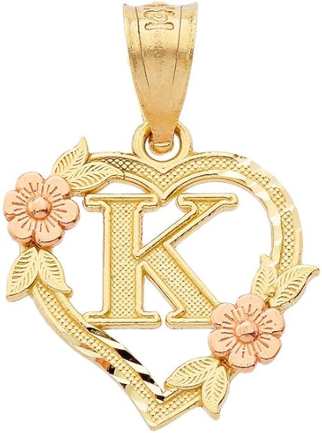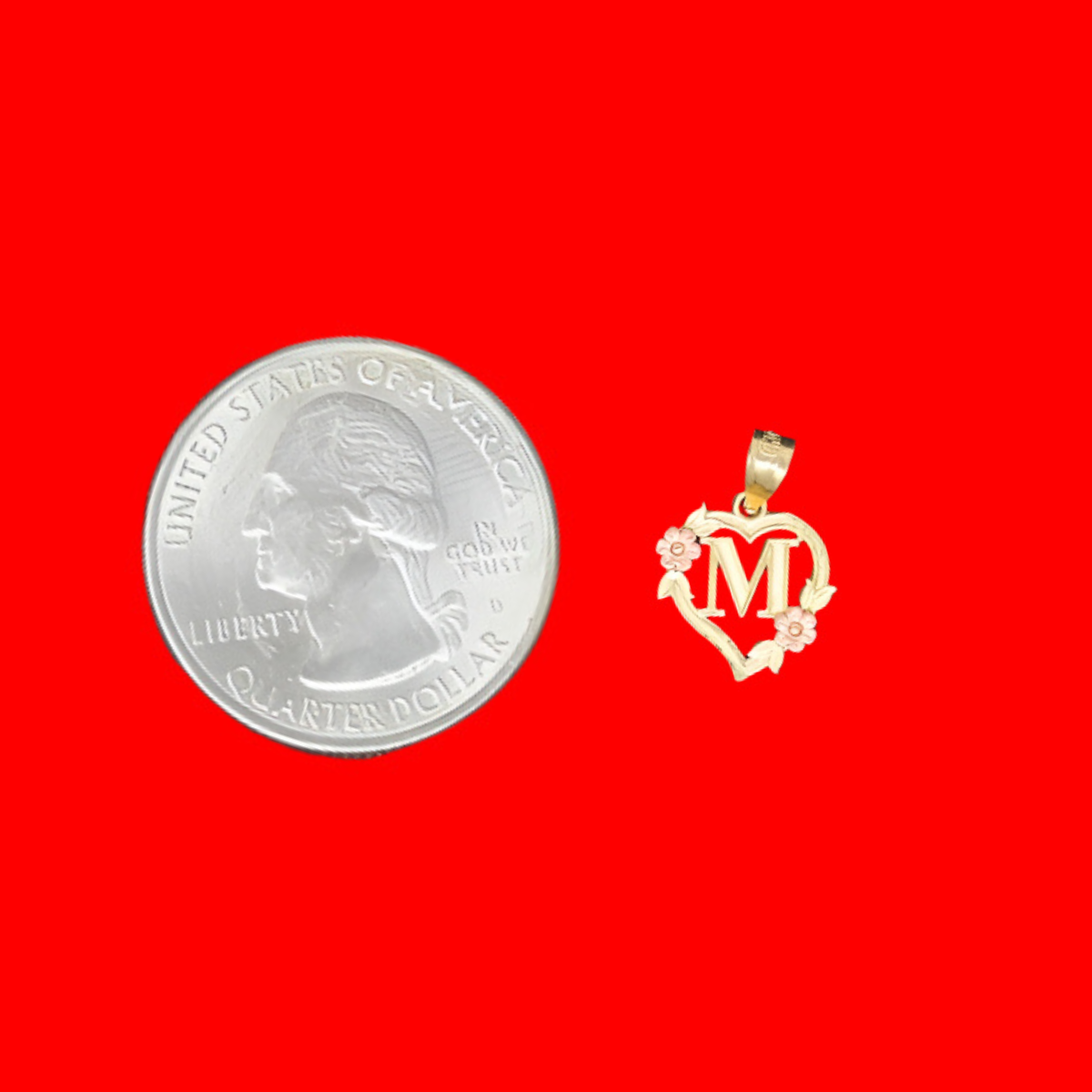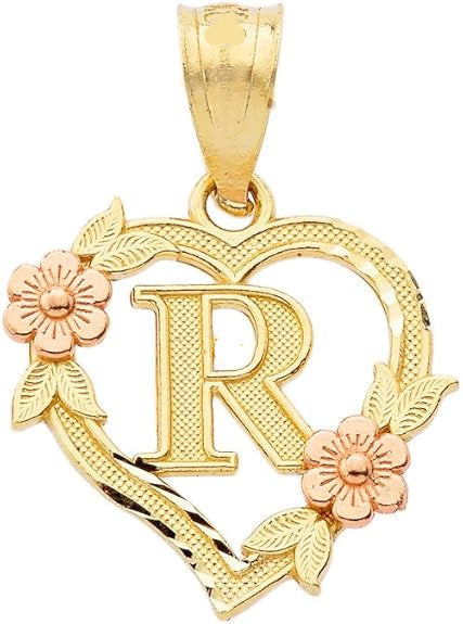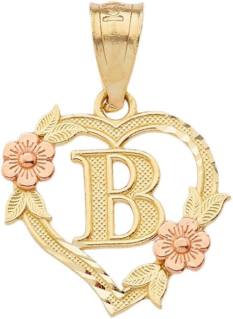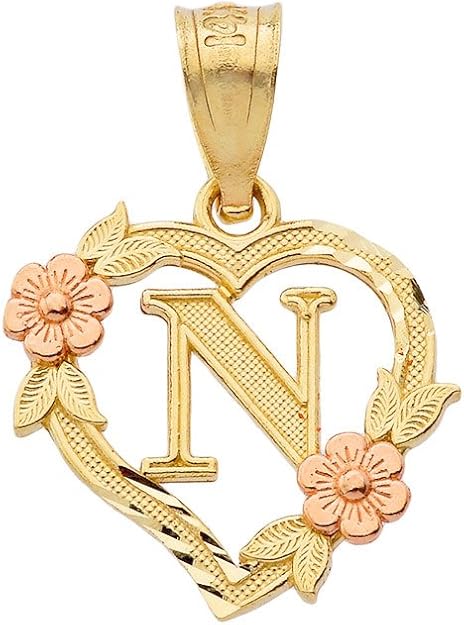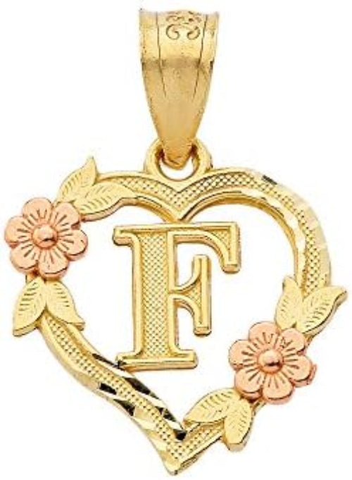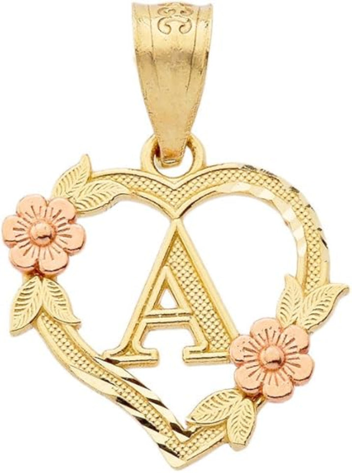 NEXUS BLING NB 10K YELLOW ROSE GOLD HEART FLOWER ALPHABET INITIAL LETTER PENDANT CHARM A TO Z