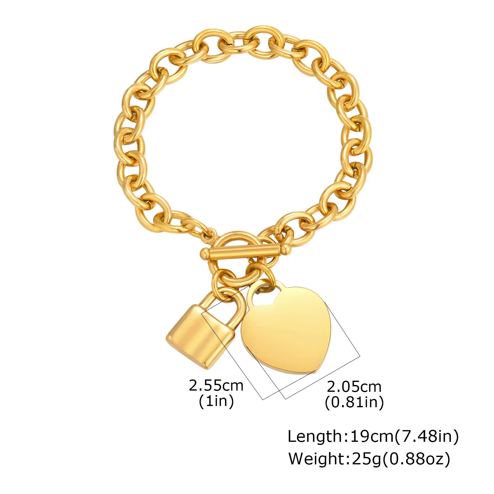 HEART-SHAPED LOCK WOMEN BRACELET STAINLESS STEEL CHAIN BRACELET