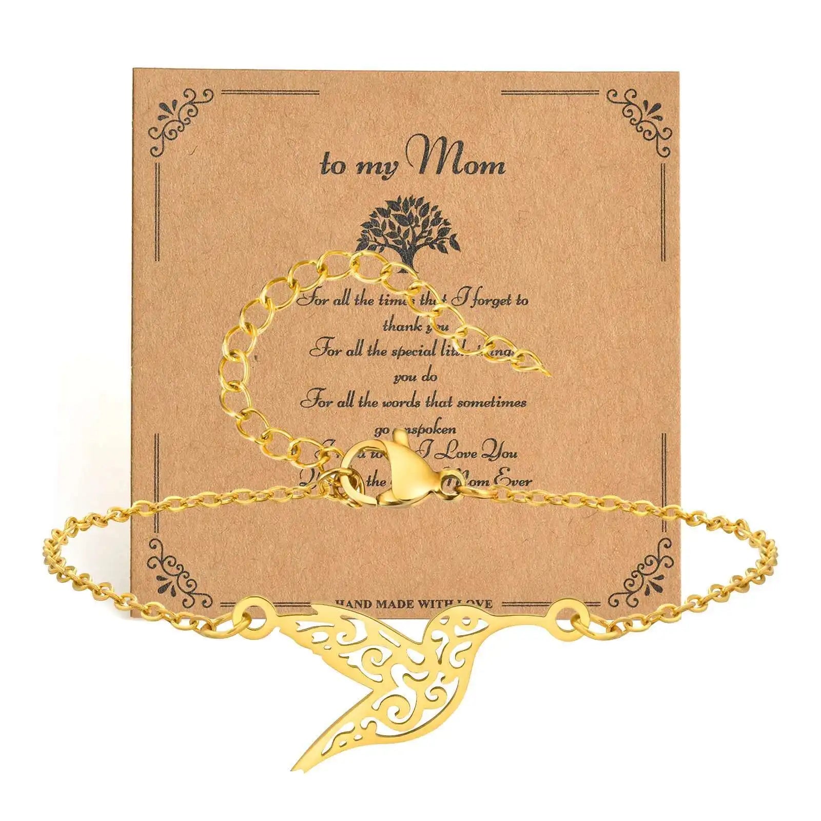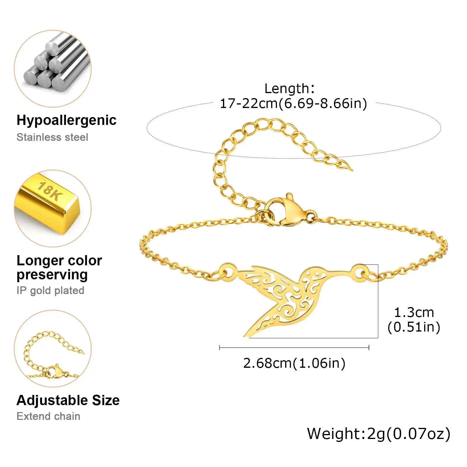 This beautiful Prjewel Hummingbird Birds bracelet features a stunning hollow bird pendant, making it the perfect accessory for any bird lover. Crafted from high-quality stainless steel, it is durable and resistant to tarnishing. This bracelet is a fashionable and unique option for any occasion and makes for a thoughtful Mother's Day gift.