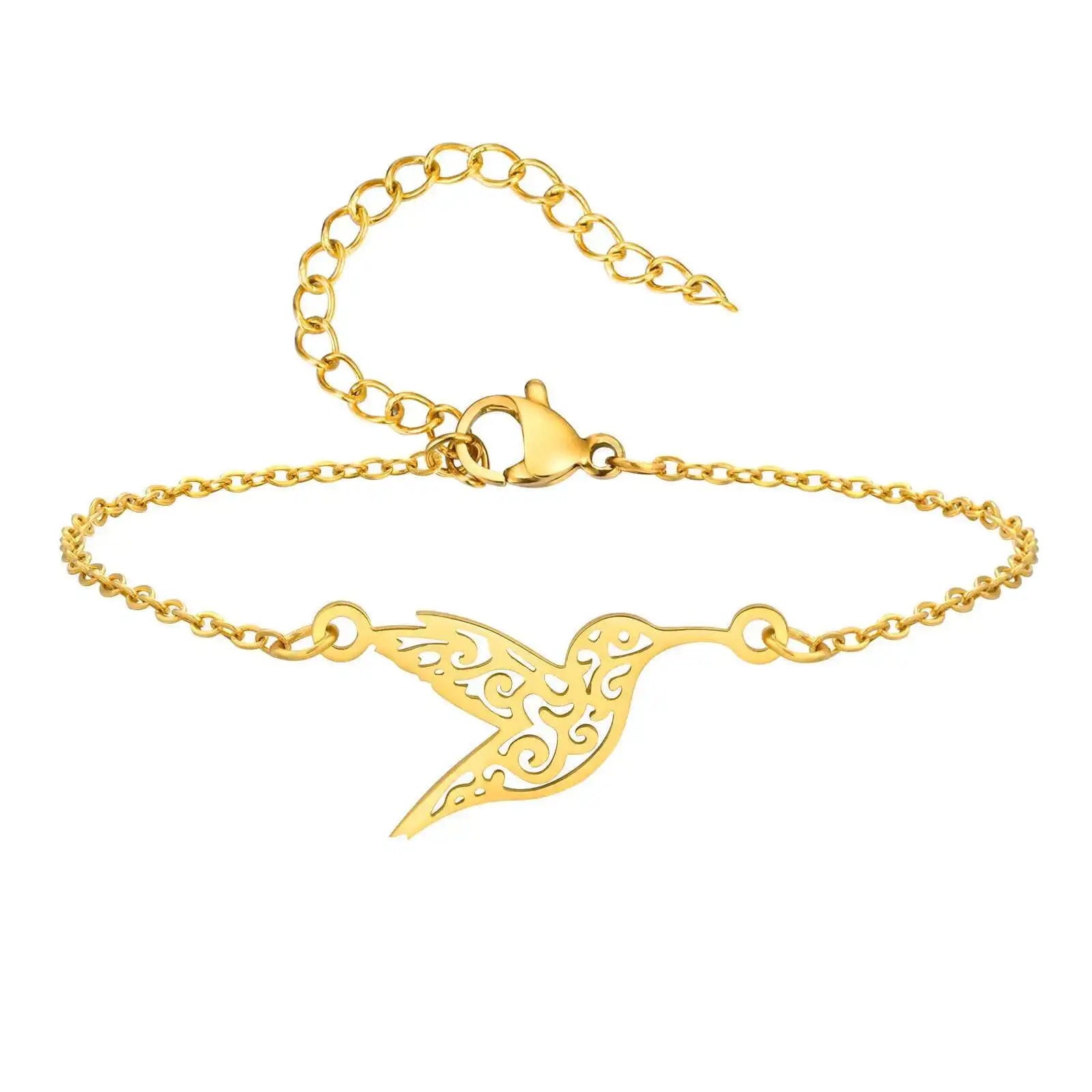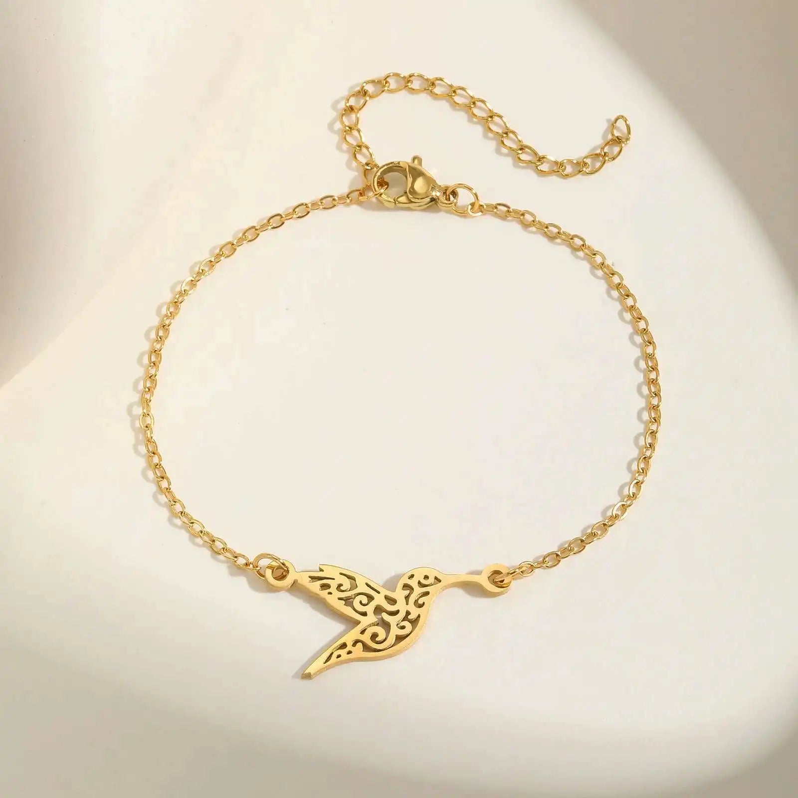 HUMMINGBIRD BIRDS HOLLOW ANIMAL FASHION PENDANT STAINLESS STEEL BRACELET