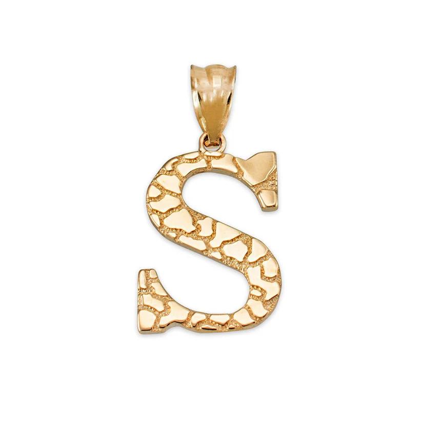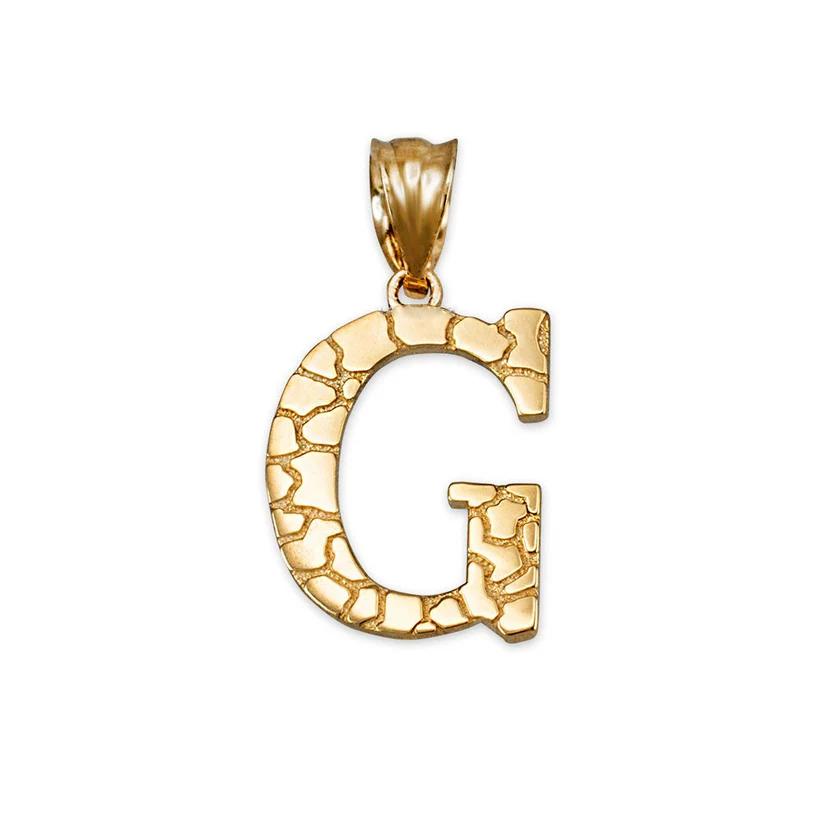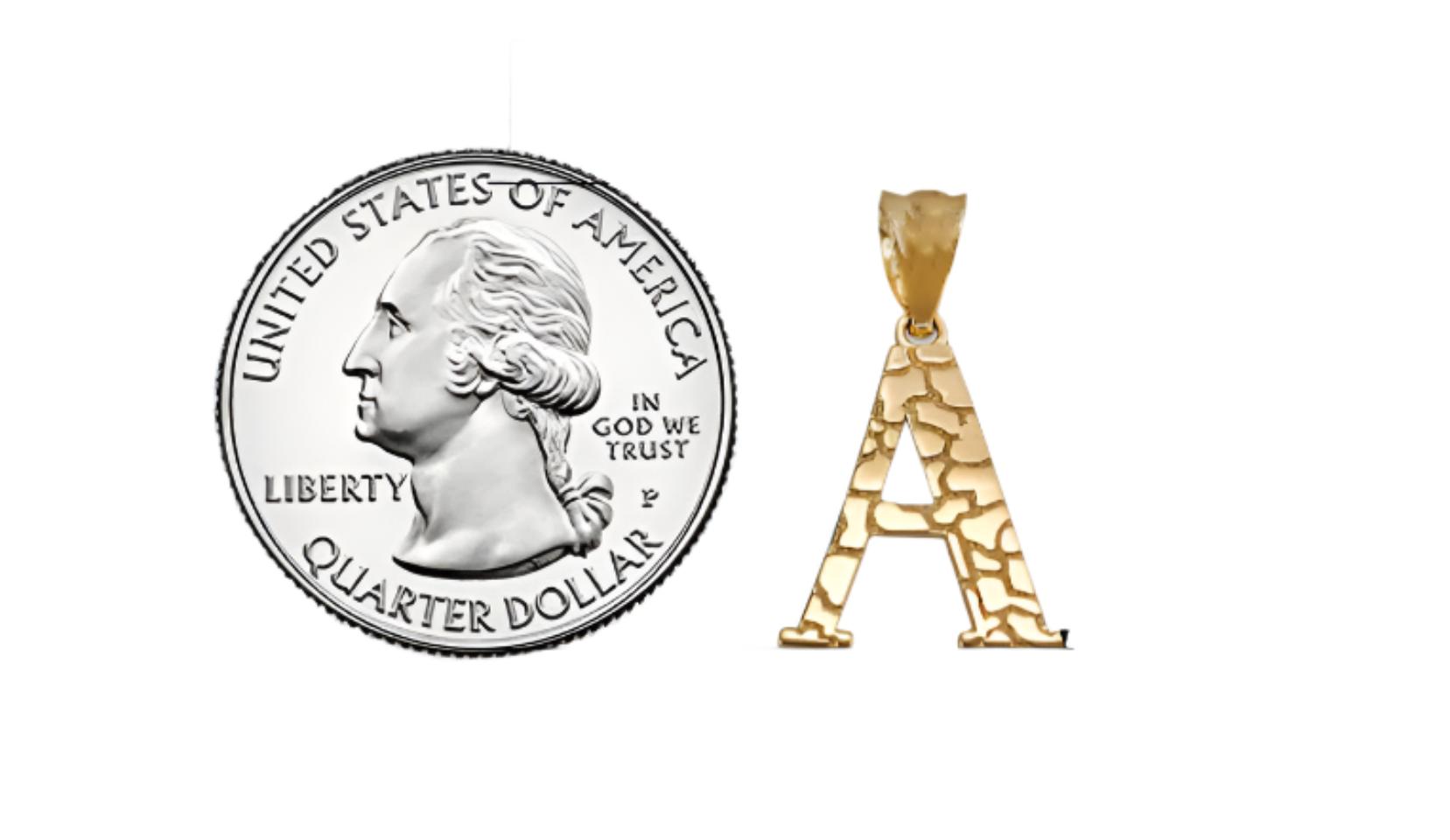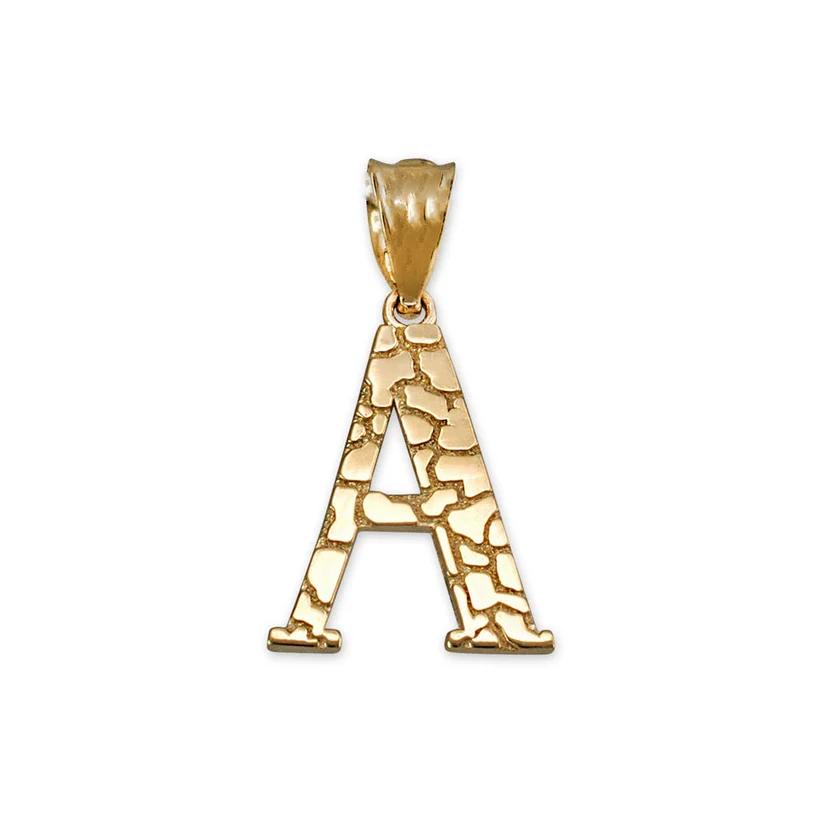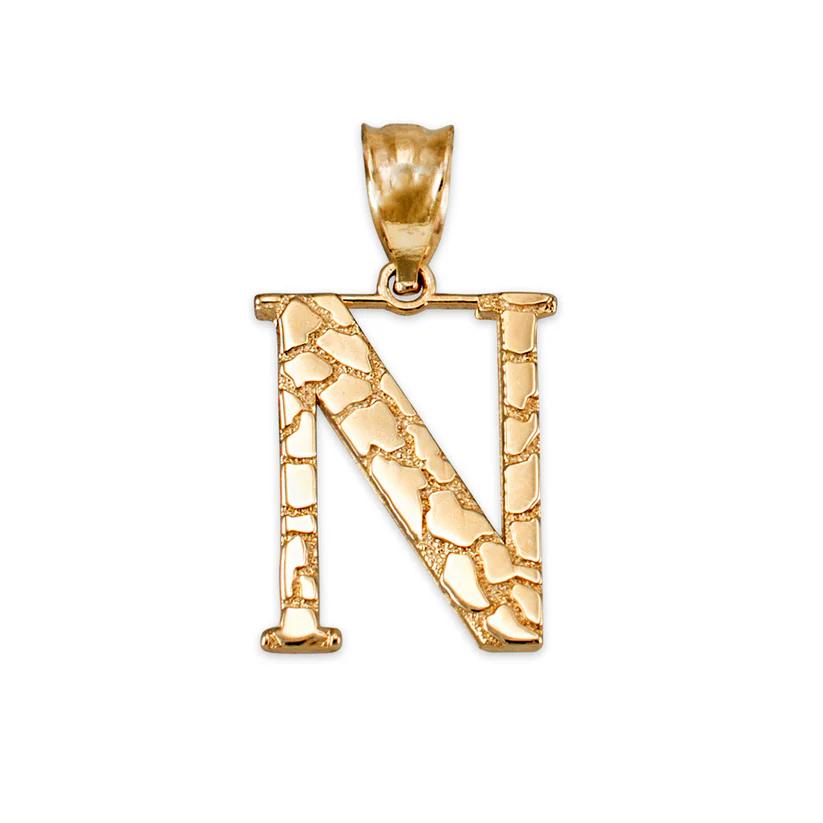 Elevate your personal style with the NB 10K Nugget Style Initial Pendant A to Z. Crafted from 10k gold and weighing 1.10 grams, this pendant adds a touch of elegance to any outfit. With a 4 mm bail opening and a pendant height of 0.87 inches, this piece is versatile and perfect for everyday wear.